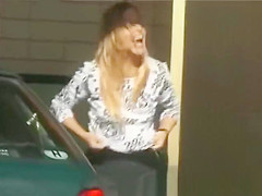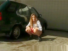 Hotty with plug in the a-hole positions for a lad at a public beach