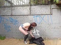 Breana in bitch gives face hole gagging bj in the ou...