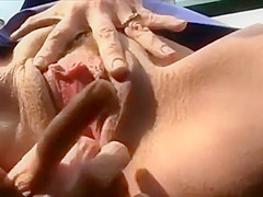 Hotty with plug in the a-hole positions for a lad at a public beach
