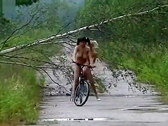 Hotty with plug in the a-hole positions for a lad at a public beach
