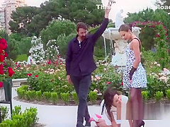 Hotty with plug in the a-hole positions for a lad at a public beach
