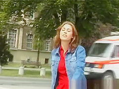 Sexy hitchhiker gets slammed about the roadside