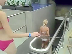 Flash play at swimming pool - two cuties