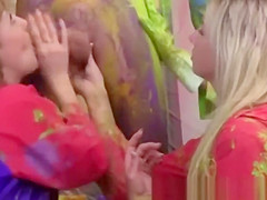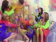 Autumn & Grace & Bianca & Olie & Savannah in real college sex with a group of cute chicks