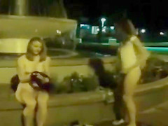 Undressed night-time fountain play