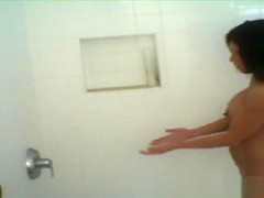 Brunette Hair Caught Engulfing Ramrod On Shower Camera