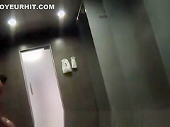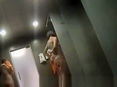 a crowd of nude chicks washing in the shower