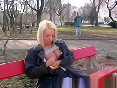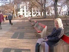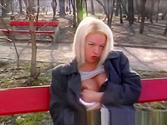 golden-haired gal pissing in public