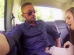 Breasty brunette hair Stella Cox getting pounded by taxi driver
