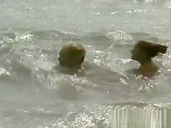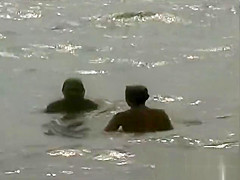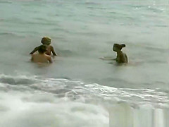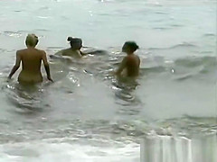 three Les beauties on a stripped beach