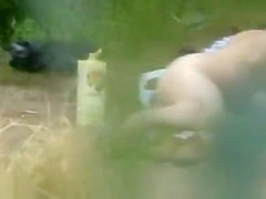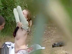 Hotty with plug in the a-hole positions for a lad at a public beach