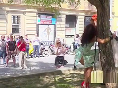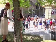 Hotty with plug in the a-hole positions for a lad at a public beach