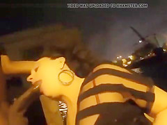 Hotty with plug in the a-hole positions for a lad at a public beach