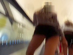 Candid voyeur 2 hawt teenies showing cheeks in shorts mall
