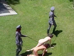 Mistresses in uniforms disgraced slaves in public