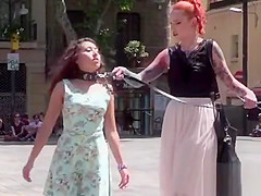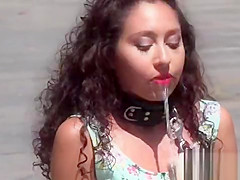 Anal plugged tiny bondman in public