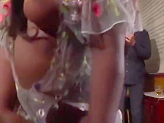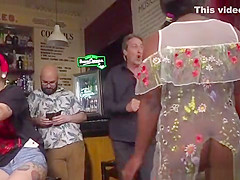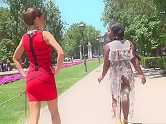 Big Beautiful Woman ebon floozy gagged with massive schlong in public