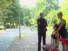 Female-Dominant made brunette hair oral-job in public bar