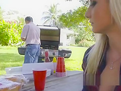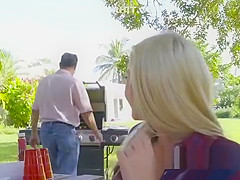 Blond sneaks and bonks bf on a tree