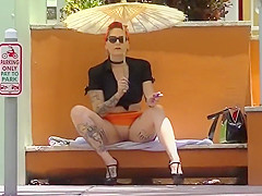 Hotty with plug in the a-hole positions for a lad at a public beach