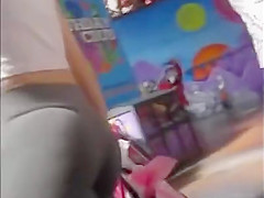 CONSTRICTED Legal Age Teenager in Grey leggings BUBBLE ASS