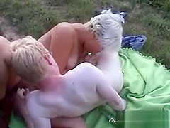 2 sexy girlfriends have sex outdoors