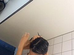 This Babe woke up early and went for a shower all by herself, for our luck this babe was showering in the dudes washroom and I could watch her ideal body very well, busted in the end trying to watch her curly cum-hole.