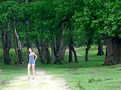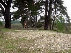 Hotty with plug in the a-hole positions for a lad at a public beach